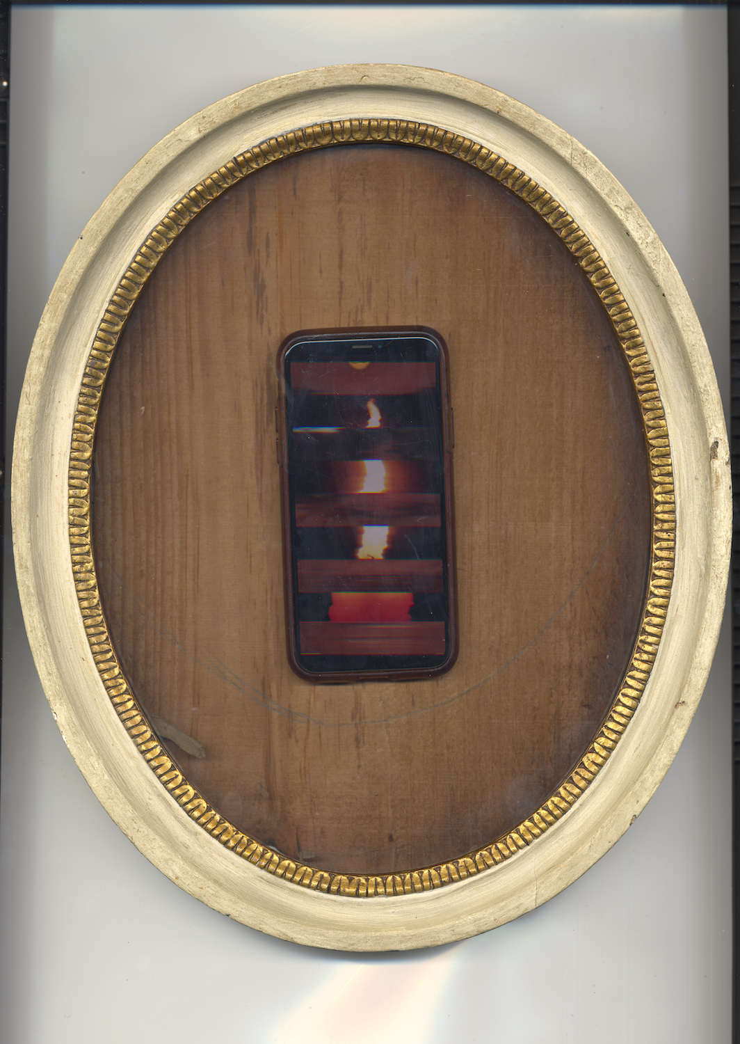 Scanned iPhone, multiple videos inside Edwardian picture frame.
